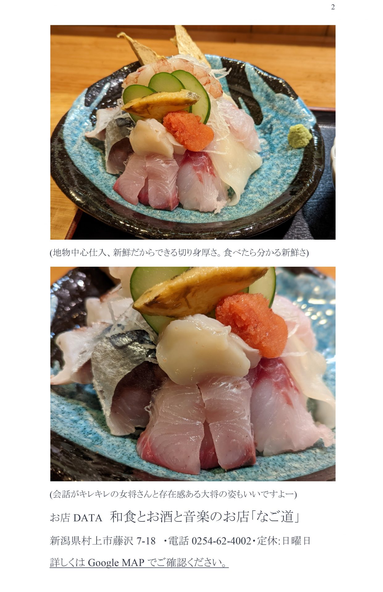 お店は村上市にありますが中心街から離れている為に比較的リーズナブルな料金です。
